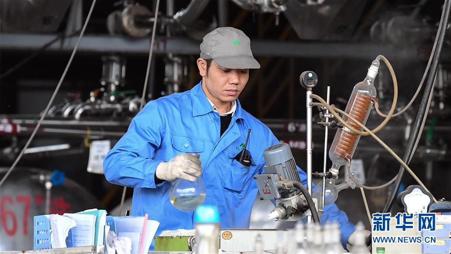广西仙草堂制药有限责任公司员工在车间制备青蒿素(3月27日摄)。新华社记者张爱林摄
