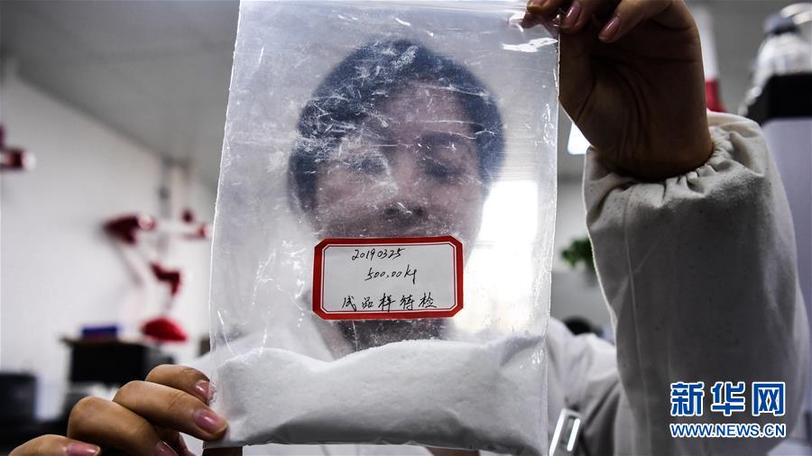 广西仙草堂制药有限责任公司员工提炼的青蒿素待检成品(3月27日摄)。新华社记者张爱林摄