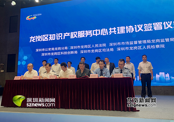 此外,活动中,龙岗区科技创新局、市场监督管理局龙岗分局主要负责人、龙岗区司法局、龙岗区法院、龙岗区检察院、龙岗公安分局六方进行了龙岗区知识产权服务中心共建协议签约仪式。将有助于加快龙岗区知识产权服务中心建设步伐,打造“创造、运用、保护、管理、服务”全链条协同工作体系,为企业提供更快捷、更有效的知识产权公共服务,打通知识产权服务最后一公里。