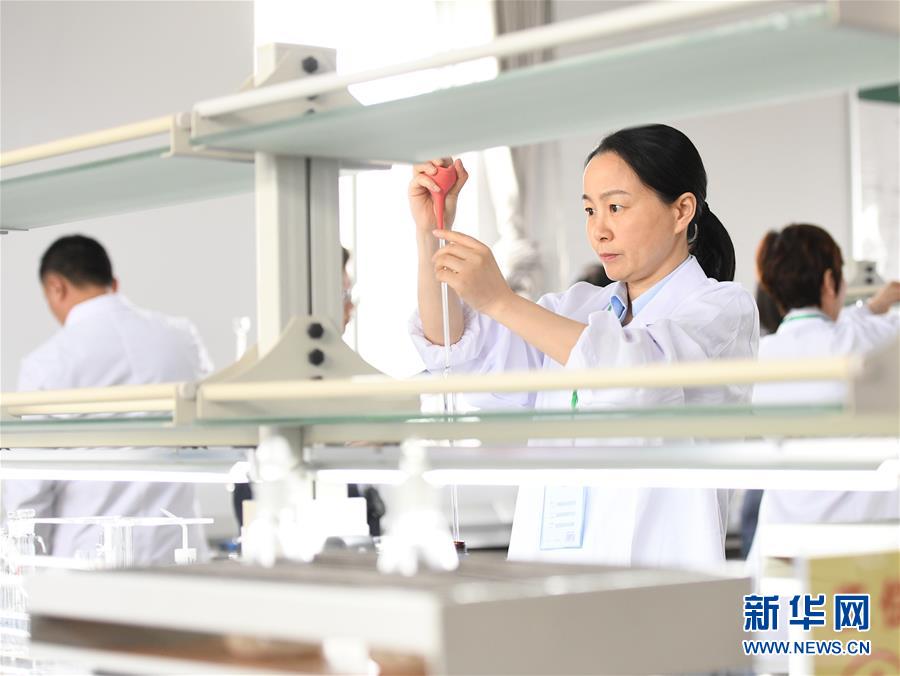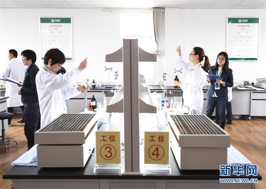 4月27日,选手对粮食储存品质指标进行检测。当日,中央储备粮武汉直属库举行了一场技能大比武,竞技项目包括粮油仓储管理和农产品食品检测,来自中储粮集团湖北辖区的17支代表队的57名选手参加了比赛。新华社记者肖艺九摄