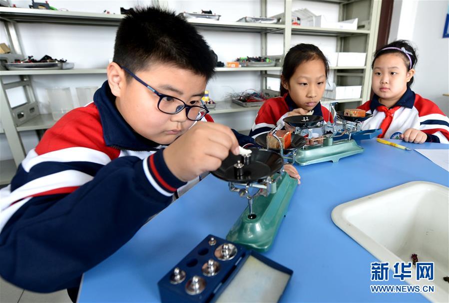 4月29日,邯郸市邯山区实验小学的学生在做实验。2018年以来,为解决小学生四点半放学后无人看管的问题,河北省邯郸市邯山区实验小学成立“四点半课堂”。下午放学后,学校组织教师对学生进行课业及艺术、科学等方面的辅导,促进学生全面发展。“四点半课堂”为小学生提供了一个学习休闲的好去处,深受学生及家长欢迎。新华社记者王晓摄