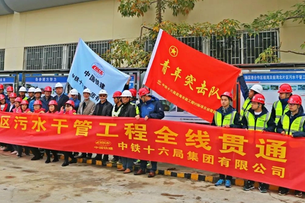 2018年1月30日,在污水干管贯通的当天,项目部成立了以项目经理王润斌、项目书记王邵峰为队长的青年突击队,并举行了授旗仪式,前海管理局领导、前海控股公司领导以及铁建南方前海市政集群指挥部部领导参加成立活动。一工区项目经理王润斌在授旗现场表态:污水干管工程高标准按期完工,获得好评,但成绩只属于过去,未来仍需努力。2018年,三号景观桥、南联络通道等工程将全面掀起大干,新的任务、新的征程仍然需要我们青年一代去奋斗努力,大家要以起点就是冲刺的作风,撸起袖子实干苦干,发挥青年突击的榜样力量,攻坚克难,守住底线,创造更多更好的精品工程。