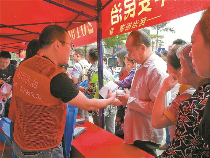 深圳新闻网讯 为推动“平安民治、和谐民治”创建,进一步提升辖区居民安全感和幸福感,营造全民参与、共建安全、共享平安的良好氛围,5月5日下午,龙华区民治街道上芬工作站组织开展以“反邪教、禁毒、反电信网络诈骗、维护道路安全”多个内容为主题的大型宣传活动。社区工作人员、辖区党员志愿者、义工等多部门共同参与了活动。