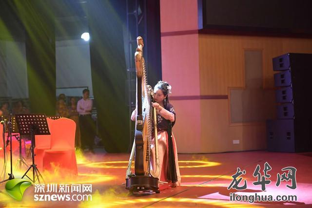 致敬经典,遥寄内心怀古情怀。晚会首先在龙华区广东汉乐协会“进校园,传薪火”中打造的第一支队伍——观澜中学汉乐队的《锣鼓喧天》中拉开了序幕。接着,传统广东汉乐《平湖》、唢呐《赏花》等经典曲目纷纷亮相。优雅的服饰、高超的技艺、绝妙的音律仿佛将观众带到了轻松自然的世外桃源。值得一提的是,箜篌作为中华民族十分古老的乐器,在现场也被经典演绎,演出特邀青年箜篌演奏家王帅为大家弹奏火爆全网的《知否知否》主题曲,柔美清澈的音色,引得观众们纷纷吟唱,仿佛真的置身于当时的宫廷雅乐中。随后一首曾获得CCTV全国民族器乐大赛传统民间组合第一名的获奖曲目《翠子登潭》将晚会推向高潮。