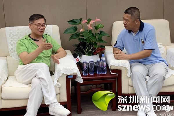 国家一级演员、广东粤剧院院长、著名粤剧表演艺术家丁凡(左)接受媒体采访。