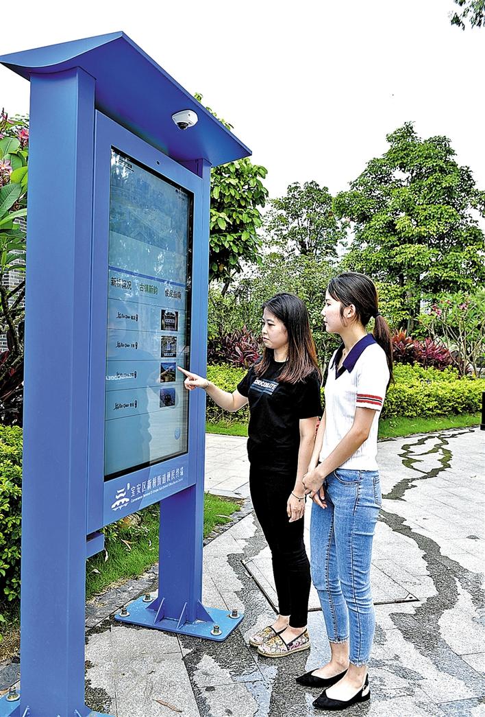 多媒体便民服务终端是政府便民工程的重要项目,记者获悉,此举按照“三年大变样”计划,以此提高整个街道综合能力,增强群众对辖区的获得感和认知度。按下“宝安通”按钮可进入智慧宝安移动APP-宝安通的界面,提供三防知识、公交路线查询、医院信息、学校查询、民生办事流程查询等便民功能,实现各类智慧政务便民自助服务,把多媒体便民服务终端打造成体现新桥人文关怀与和谐社区及富有新桥街道特色的形象窗口。