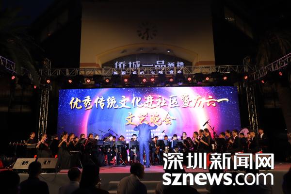 晚上7点,文艺晚会准时开始。南山第二实验学校校长邓晋标上台致辞。邓校长指出传统文化进社区活动不仅能够为孩子们的健康、全面、特长发展搭建丰富、多元的体验平台,也能够展现出“有人性、有温度、有故事、有美感”的未来学校新样态。