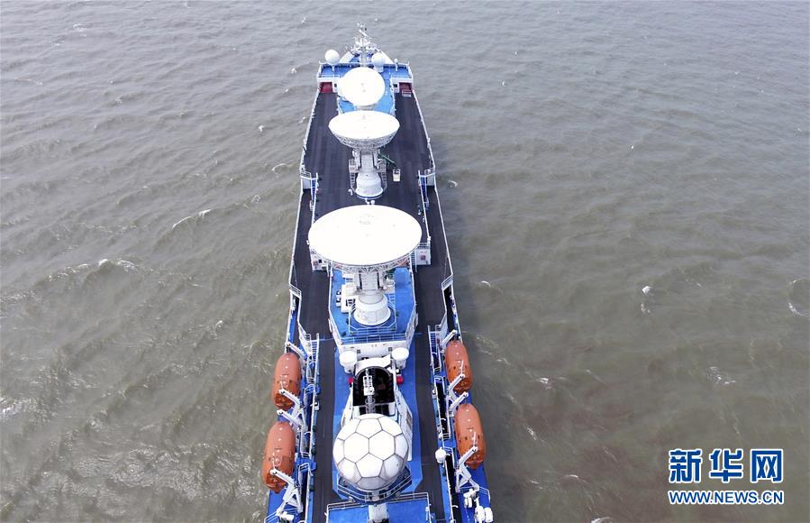 6月8日,远望3号船起航赴南太平洋执行测控任务(无人机拍摄)。新华社记者 刘诗平 摄
