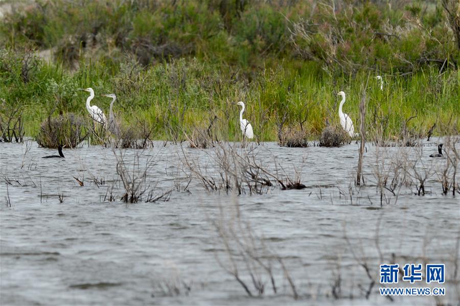 6月9日,白鹭在新疆乌伦古湖国家湿地公园休憩。进入夏季以来,在新疆阿勒泰地区的乌伦古湖国家湿地公园,栖息此地的大量迁徙鸟类成为一道靓丽的风景。新华社记者丁磊摄