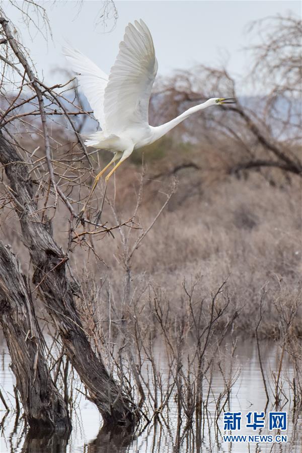 6月9日,一只白鹭在新疆乌伦古湖国家湿地公园飞翔。进入夏季以来,在新疆阿勒泰地区的乌伦古湖国家湿地公园,栖息此地的大量迁徙鸟类成为一道靓丽的风景。新华社记者丁磊摄