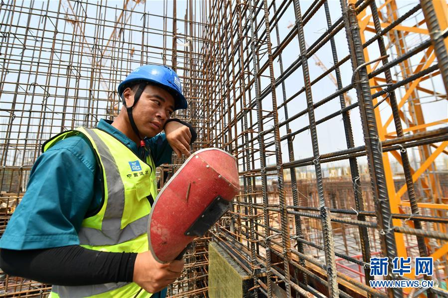 6月16日,在济南裴家营城中村改造村民安置用房项目现场,电焊工刘朋冒着酷暑施工。当日,山东省气象台继续发布高温黄色预警信号。在济南裴家营城中村改造村民安置用房项目现场,中建三局施工人员顶着烈日高温,加紧建设,确保项目按时交付。新华社记者朱峥摄