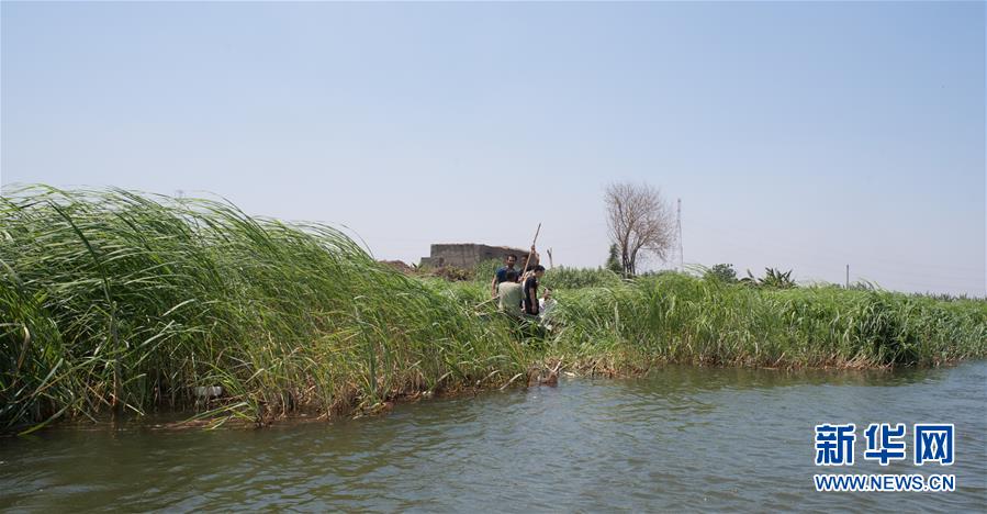 6月10日,在埃及米努夫省,记者近距离观察渔民如何捕捞小龙虾。新华社记者邬惠我摄