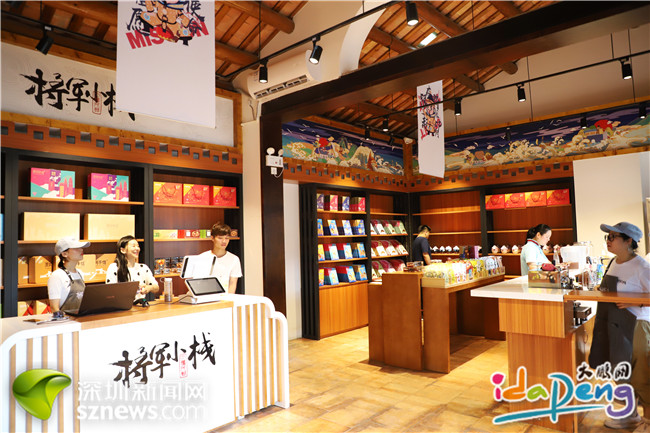 大鹏所城文创店位于所城北门广场,共150平方米,由主营文创产品的“鹏城万里”和主营大鹏手信的“将军小栈”两家店铺组成。文创店的产品大多以大鹏所城历史遗迹和人物为背景,不仅设计独具创意,更能感受到大鹏本土文化的魅力。