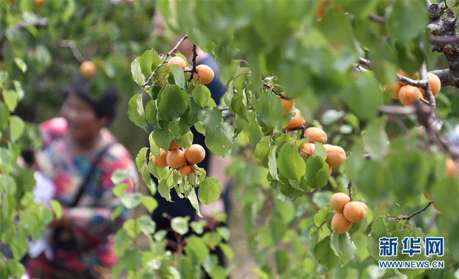 6月19日,南独乐河镇北寨村杏园内成熟的红杏吸引游人前来采摘。新华社记者李欣摄