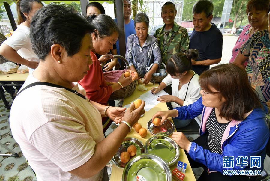 6月19日,南独乐河镇北寨村村民在进行甜杏和大杏比赛。新华社记者李欣摄
