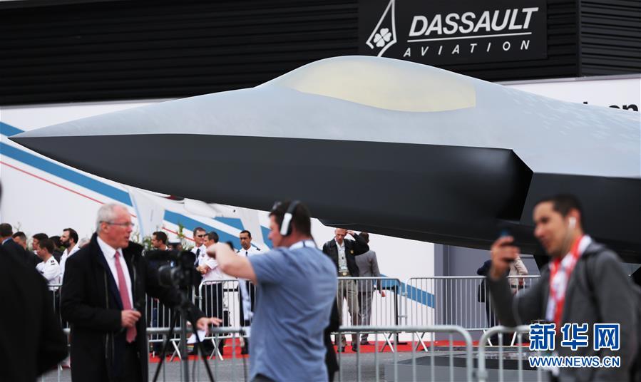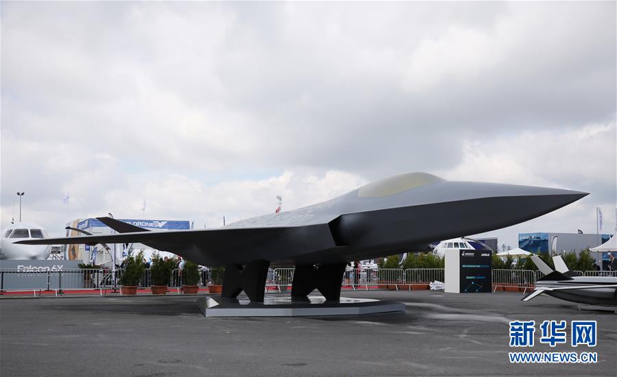 这是6月20日在法国巴黎航展上拍摄的由法国达索飞机制造公司和欧洲飞机制造商空中客车公司联合研制的第六代战斗机全尺寸模型。正在法国举行的第53届巴黎—布尔歇国际航空航天展览会(巴黎航展)上,欧洲两家飞机制造商携其联合研制的第六代战斗机全尺寸模型亮相,并表示这款战斗机将在2026年首飞,2040年正式服役。这款战斗机主要由法国达索飞机制造公司和欧洲飞机制造商空中客车公司负责研制,并获得法国、德国和西班牙三国政府支持。新华社记者高静摄