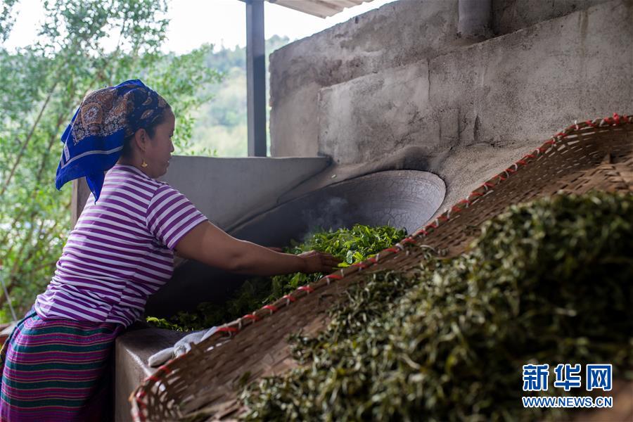 布朗山布朗族乡老曼峨寨村民在家中翻炒茶叶(6月13日摄)。新华社记者胡超摄