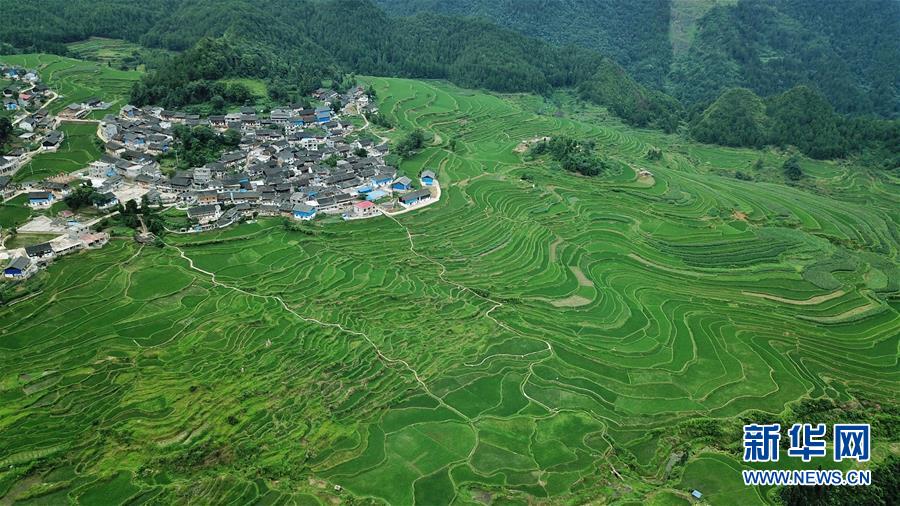 7月1日无人机拍摄的贵州省丹寨县龙泉镇高要梯田。仲夏时节,位于贵州省丹寨县龙泉镇的高要梯田美景如画。新华社记者欧东衢摄