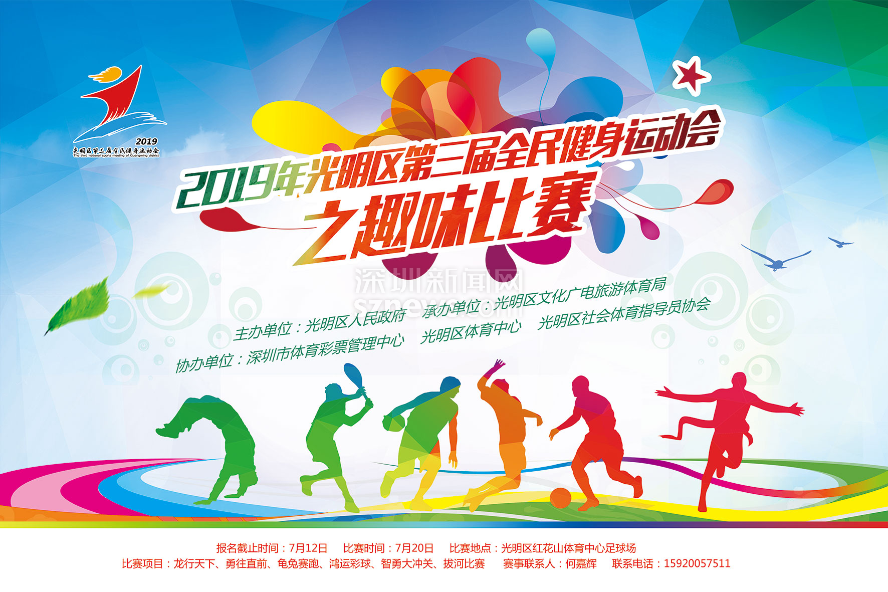 深圳新闻网7月2日讯(记者 陈圆圆 通讯员 何嘉辉)7月2日,记者从光明区了解到,由光明区人民政府主办,光明区文化广电旅游体育局承办的2019年光明区第三届全民健身运动会之趣味比赛将于7月20日在光明区红花山体育中心足球场进行。