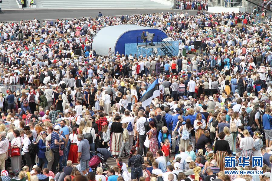 7月7日,在爱沙尼亚首都塔林,第27届歌唱庆典“我的祖国,我的爱”主题音乐会在歌唱庆典广场举行。主题为“我的祖国,我的爱”的大型歌舞庆典活动7日在爱沙尼亚首都塔林落下帷幕。来自爱沙尼亚和其他国家的1700多个合唱团及舞蹈团参加了此次活动,表演者总数达4.7万名。新华社记者郭春菊摄