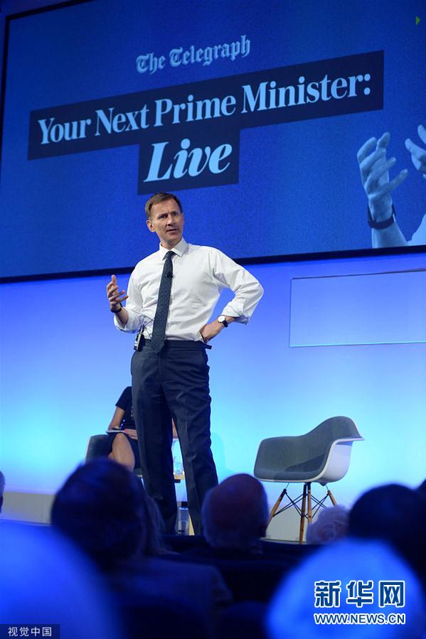 当地时间7月8日,英国朴茨茅斯,英国保守党领袖候选人杰里米·亨特出席现场问答活动。(图片来源:视觉中国)