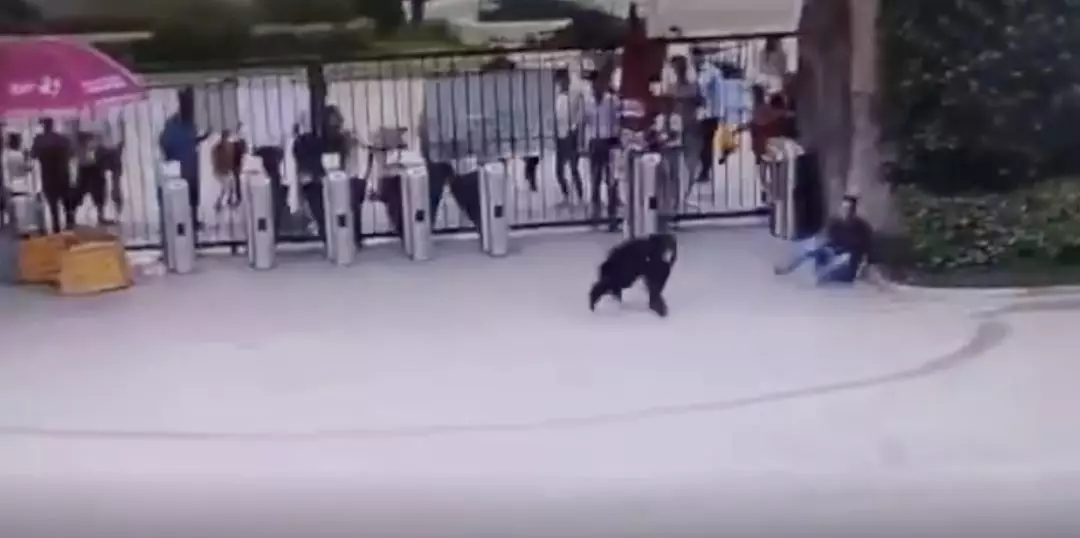 一只黑猩猩突然从兽舍内逃脱