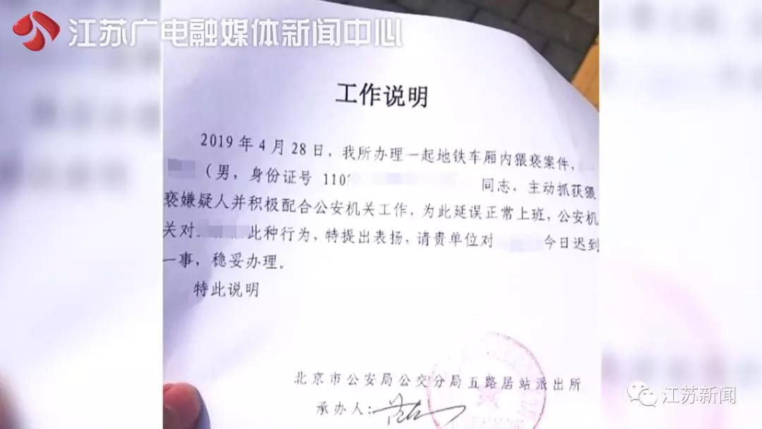 2019年4月28日,一张迟到证明爆红网络,内容是:北京一派出所办理一起地铁列车上猥亵案件时,一名男乘客主动抓获嫌疑人并积极配合公安机关工作,延误上班,公安机关提出表扬,并开具了这份迟到证明。