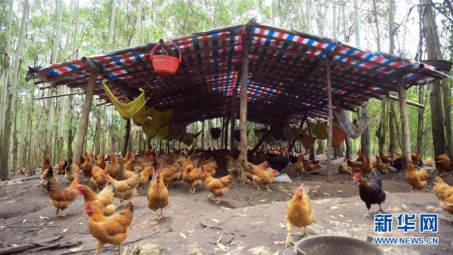 这是钦州市钦南区那思镇村民在山头林地发展“沉香鸡”养殖的鸡棚(7月15日摄)。近年来,广西钦州市钦南区那思镇利用山头林地资源积极引导当地贫困群众发展林下“沉香鸡”养殖。养殖产品深受粤港澳消费者青睐,助力山村贫困户“脱贫摘帽”。新华社记者张爱林摄