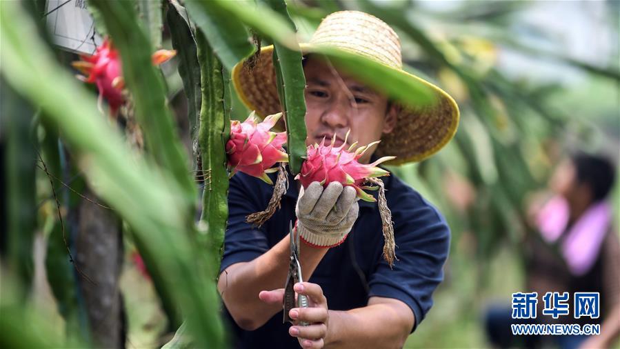 广西钦州市钦南区充分发挥气候和资源优势,大力发展火龙果种植,现已成为当地贫困群众脱贫致富的主要产业之一。目前,钦南区火龙果种植面积1万多亩,将带动从业贫困户户均增收2万多元。