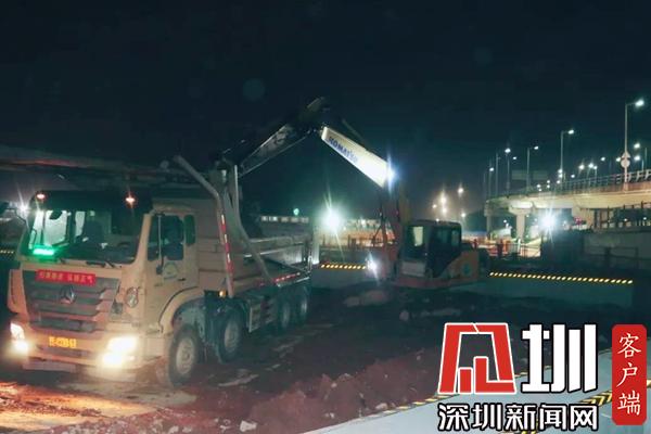 凌晨2点,广深沿江高速上行驶的车辆比白天少了许多,高速桥下5号冷站的施工现场依然灯火通明,一片繁忙。施工便道上,运输渣土的车辆排成了长龙;数台挖机挥舞着铁臂在奋力的开挖装车;身着反光衣的施工员们忙碌穿插在现场,指挥着土方作业,显得格外的耀眼....