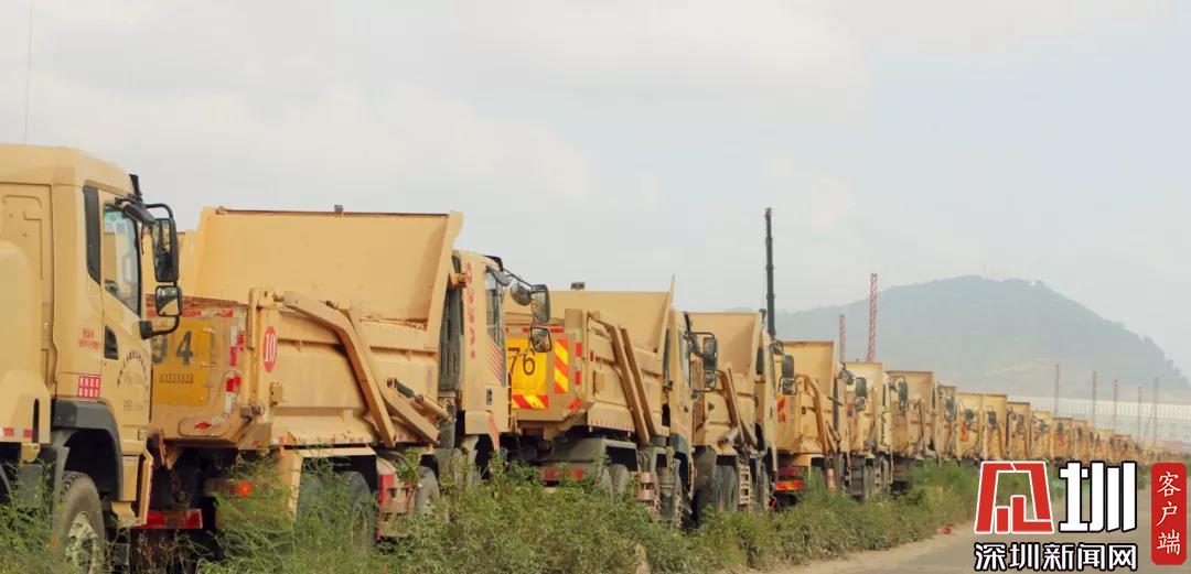 排队出土的渣土车。