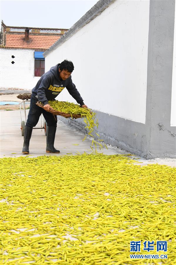7月18日,在大同市云州区唐家堡村,村民晾晒黄花。新华社记者杨晨光摄