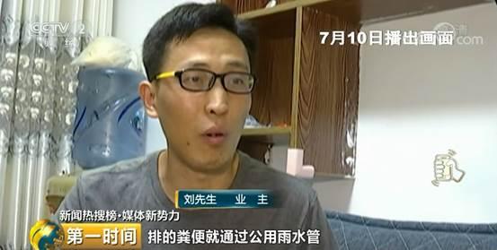 业主刘先生:厕所厨房都在上面,排的粪便就通过公用雨水管,直接就排在一楼的水沟里这个水沟里面全是粪便,门都不要想出去。