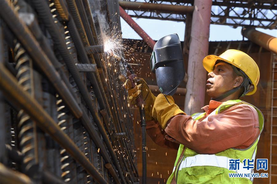 7月26日,在四川宜宾市临港经济开发区的临港长江大桥控制性工程——三号主墩施工现场,工程人员在焊接主塔钢筋。 近日,全国部分地区持续高温天气,许多户外劳动者不畏酷暑,坚守岗位。 新华社记者 刘坤 摄