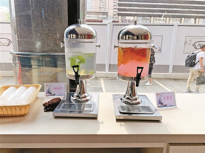 记者到该店走访时,看到该店提供的茶水多种多样,不仅有清凉的柠檬薄荷茶,也有较受年轻人喜爱的水果茶。店员告诉记者,自去年开店后,该店门前的茶水一直供所有市民免费饮用。一市民笑着对记者说,“很解渴,感谢店家如此大方。”