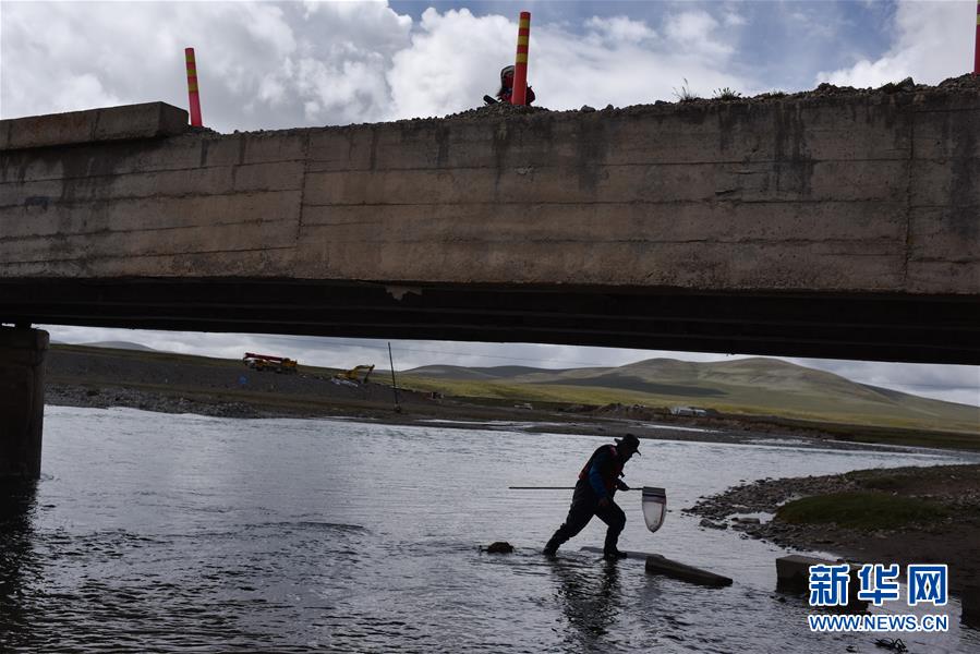 8月8日,长江科学院的科考队员李伟在科欠曲采集鱼类样本。新华社记者吴刚摄
