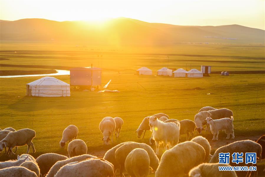 8月29日,羊群在莫日格勒河畔觅食。莫日格勒河位于内蒙古呼伦贝尔市陈巴尔虎旗境内,发源于大兴安岭西麓,流经呼伦贝尔大草原,全长290多公里。莫日格勒河河道狭窄,蜿蜒曲折,从空中俯瞰犹如一条随风舞动的丝带,飘落在呼伦贝尔大草原上。新华社记者李京摄