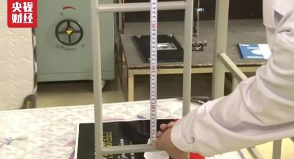 国家市场监管总局缺陷产品管理中心工作人员莫英俊:我们通过测量,床的脚踏板距离达到了340mm,脚踏板距离太大,使用者在上下床的过程中容易踩空或者滑落,造成伤害。