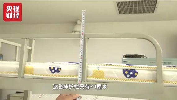 记者随机测量了三所大学宿舍内双层床上铺的护栏高度,结果发现这三张双层床的护栏高度均未达到标准要求的30厘米以上,其中最矮的一个护栏还不到15厘米。