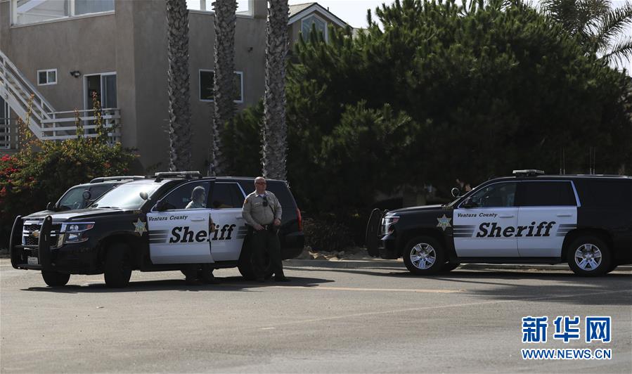 9月2日,在美国加利福尼亚州南部文图拉县,警察在美国海岸警卫队队部附近执勤。美国加利福尼亚州南部文图拉县圣克鲁斯岛附近海域一艘游船当地时间2日凌晨发生火灾。加州圣巴巴拉县消防局证实,目前船上已有5人获救,34人失踪。新华社记者李颖摄
