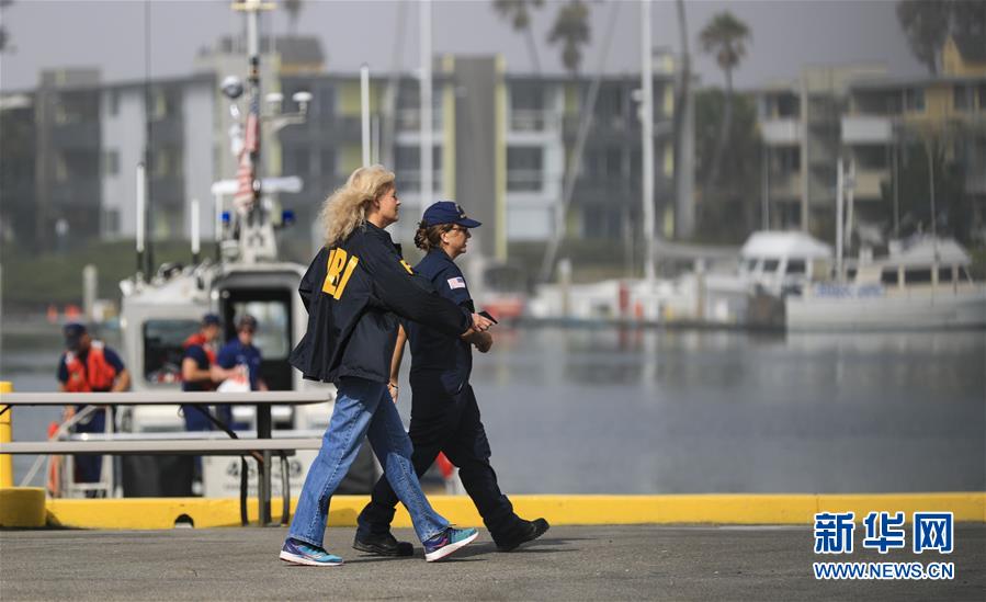 9月2日,在美国加利福尼亚州南部文图拉县,调查人员到达美国海岸警卫队队部工作现场。美国加利福尼亚州南部文图拉县圣克鲁斯岛附近海域一艘游船当地时间2日凌晨发生火灾。加州圣巴巴拉县消防局证实,目前船上已有5人获救,34人失踪。新华社记者李颖摄