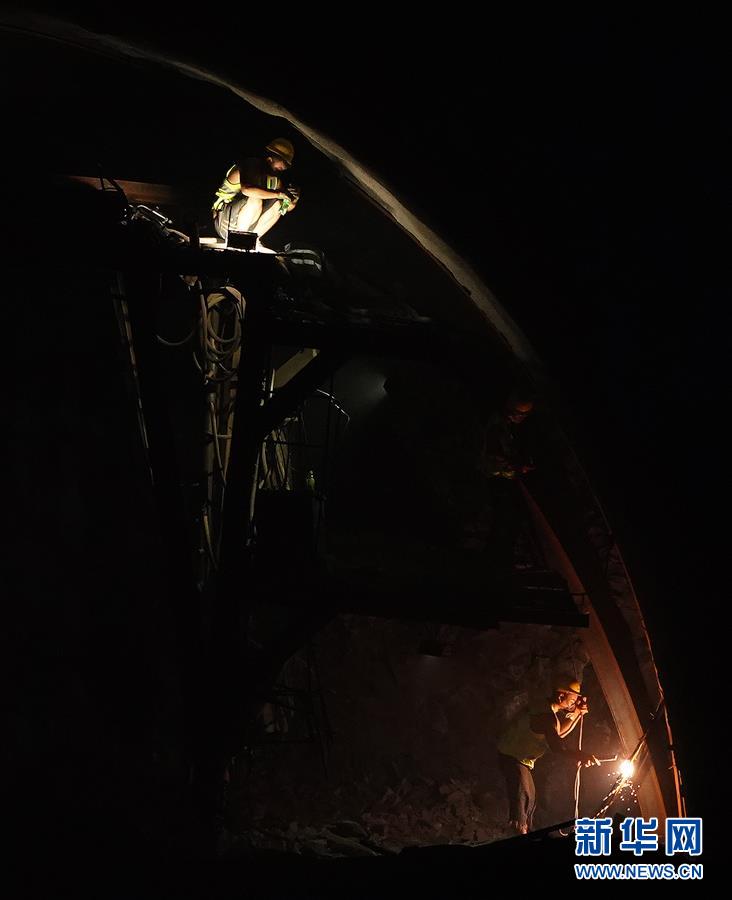9月3日,工人在位于四川峨边彝族自治县的峨米三标段新林隧道进行立拱架施工。峨米三标段预计于2020年9月完成主体工程施工。目前,成昆铁路复线峨眉至米易段正在加紧施工,整体进度良好。峨米段线路约386公里,地质条件复杂,重难点工程较多。新华社记者王毓国摄