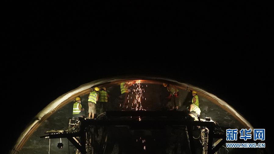 9月3日,工人在位于四川峨边彝族自治县的峨米三标段新林隧道进行立拱架施工。峨米三标段预计于2020年9月完成主体工程施工。目前,成昆铁路复线峨眉至米易段正在加紧施工,整体进度良好。峨米段线路约386公里,地质条件复杂,重难点工程较多。新华社记者王毓国摄