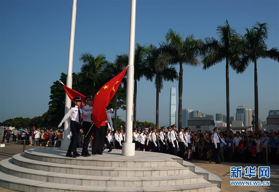 香港金紫荆广场举行的升旗仪式(9月8日摄)。新华社记者李钢摄