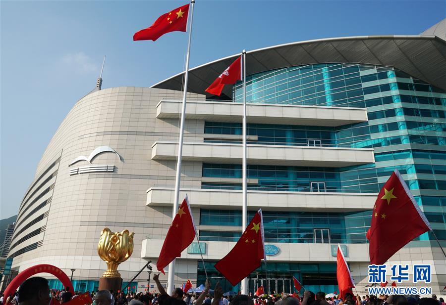 香港金紫荆广场举行的升旗仪式(9月8日摄)。新华社记者李钢摄