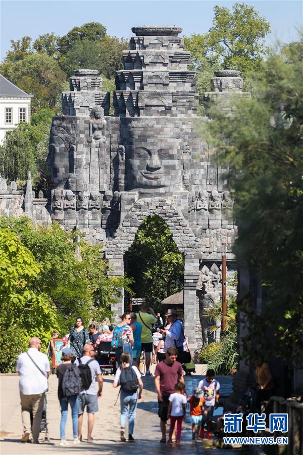 8月24日,在比利时布吕热莱特市,游客在天堂动物园具有东南亚风情的园林区游玩。新华社记者郑焕松摄