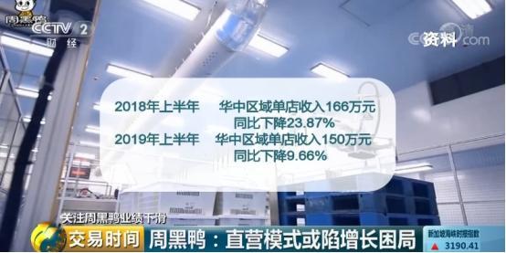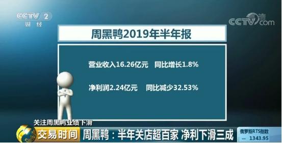 央视财经2019年9月11日讯 8月27日,周黑鸭发布了2019年半年报,然而这是公司自2016年上市以来交出的最差的一份财报,净利润下滑三成。上半年,公司新开了84家门店,但关店数量却达到了117家,门店数负增长。曾经的行业领头羊到底发生了什么。一起来看记者在上海的调查。
