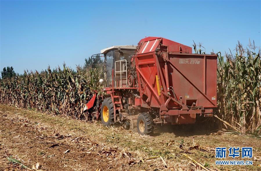 9月18日,河北省滦州市东安各庄镇的农民使用机械设备收获玉米。近期,河北省各地的秋粮等农作物陆续成熟,广大农民抢抓农时适时收获,田间地头一派繁忙景象。新华社记者杨世尧摄