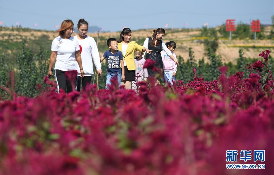 9月21日,游客在内丘县扁鹊药谷中药材花海观赏游玩。 新华社记者 朱旭东 摄