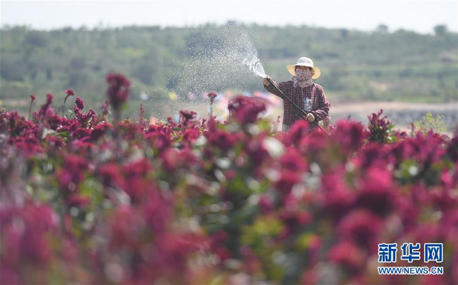 9月21日,农民在内丘县扁鹊药谷中药材种植基地为中药材浇水。 新华社记者 朱旭东 摄